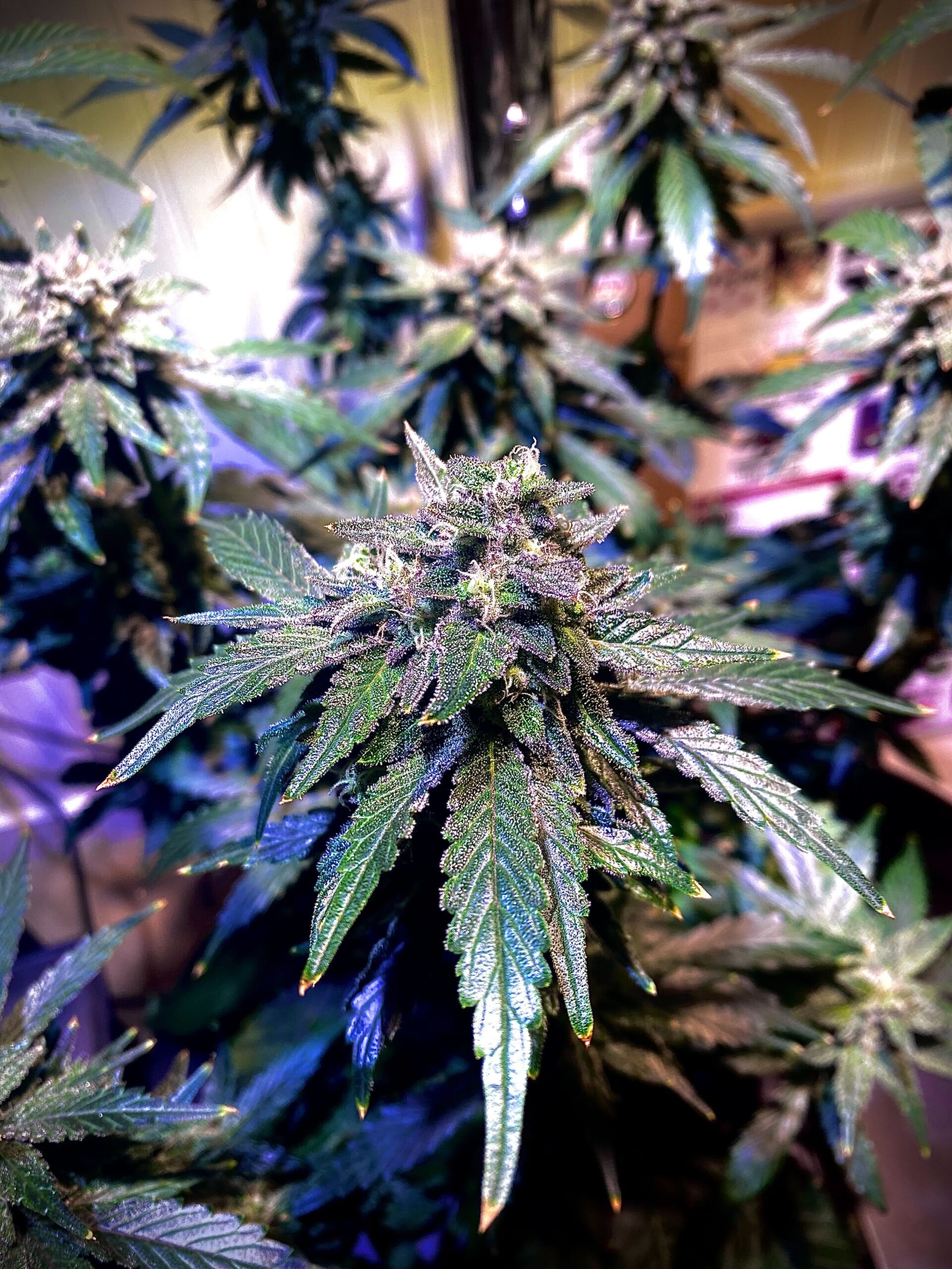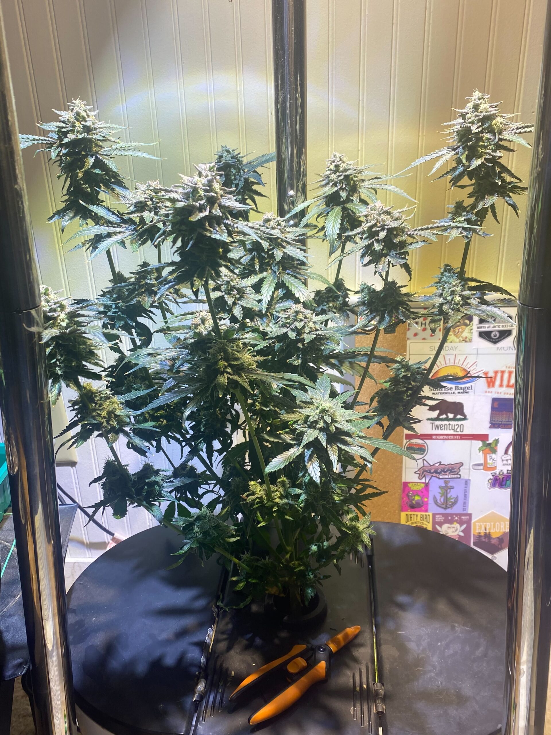 Harvest happened during week 14. I was very pleased with the results as the buds looked extremely chunky and coated in white. She had decent internodal spacing and was somewhat compact, only being about a foot and a half tall. She just finished drying and I will be trimming her soon, followed by letting her cure for a few weeks. I am very excited to smoke this one!