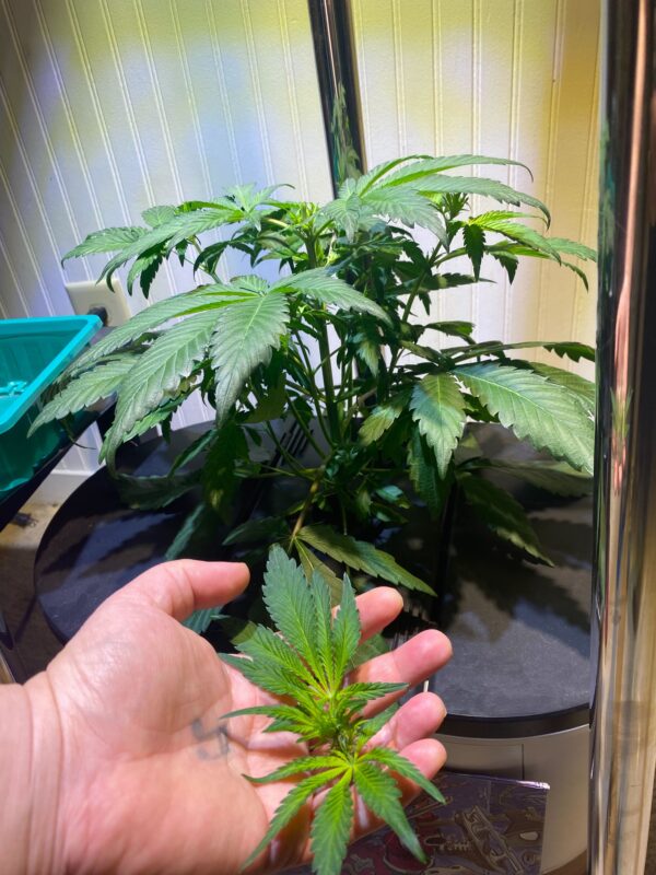 The next three images below are showing where she stands at week 5 and week 6. Some of her leaves have gotten really big. During week 6, I topped the plant in hopes that she would grow a little more outward and produce more flower. I cut the stem between the fifth and sixth nodes. At this point, she was a luscious green color and very healthy.