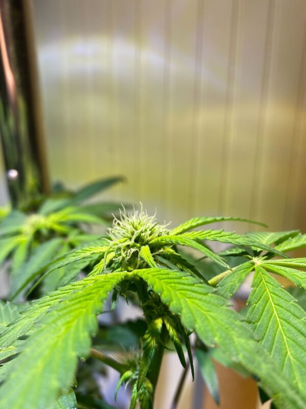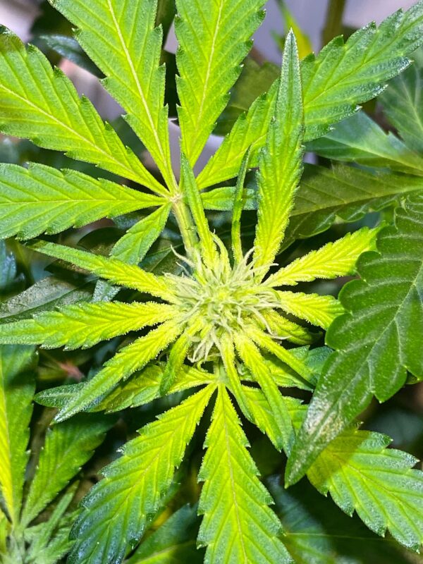 The first sign of the flowering stage occurred during week 8. She really opened up and topping definitely created more bud sites. I started to defoliate here and there to create more open space for the light to hit the buds, especially the ones toward the bottom of the plant.