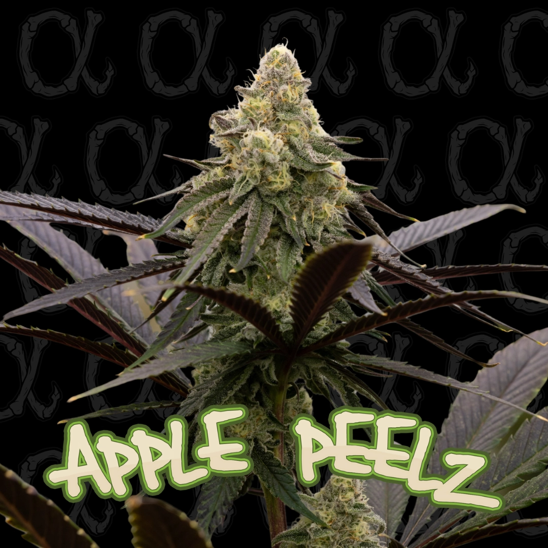 One final disclaimer: The Apple Peelz more than deserves a place in our Volume Series; however, we made a decision as a team to release it as an Alpha Series drop for two reasons: 1. When we tested these seeds we were cramped for space in our flower room, so we culled two plants that were exhibiting the arugula-cut morphology of its Brunch lineage. What we call the “arugula” foliar shape is not a bad thing at all; in fact, the Brunch “Arugula Cut” is one of the best cuts in our library. However, since we didn’t get to see this phenotype flower out to completion, we didn’t feel that we could release this strain as a Volume Series entry. 2. The silver lining is that now these seeds are more accessible to more growers and that excites us. This is definitely some great bang for your buck.