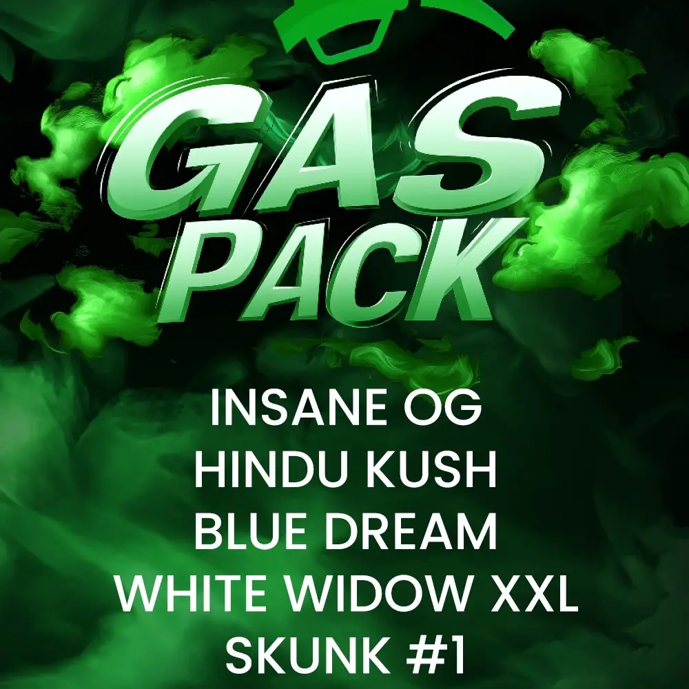 Barney's Farm proudly introduces the Gas Pack, a powerful collection of five fuel-injected classics that deliver a serious punch. Each pack offers a curated selection of heavy-hitting strains, known for their intense potency, rich flavors, and that distinctive "gas" that connoisseurs seek.