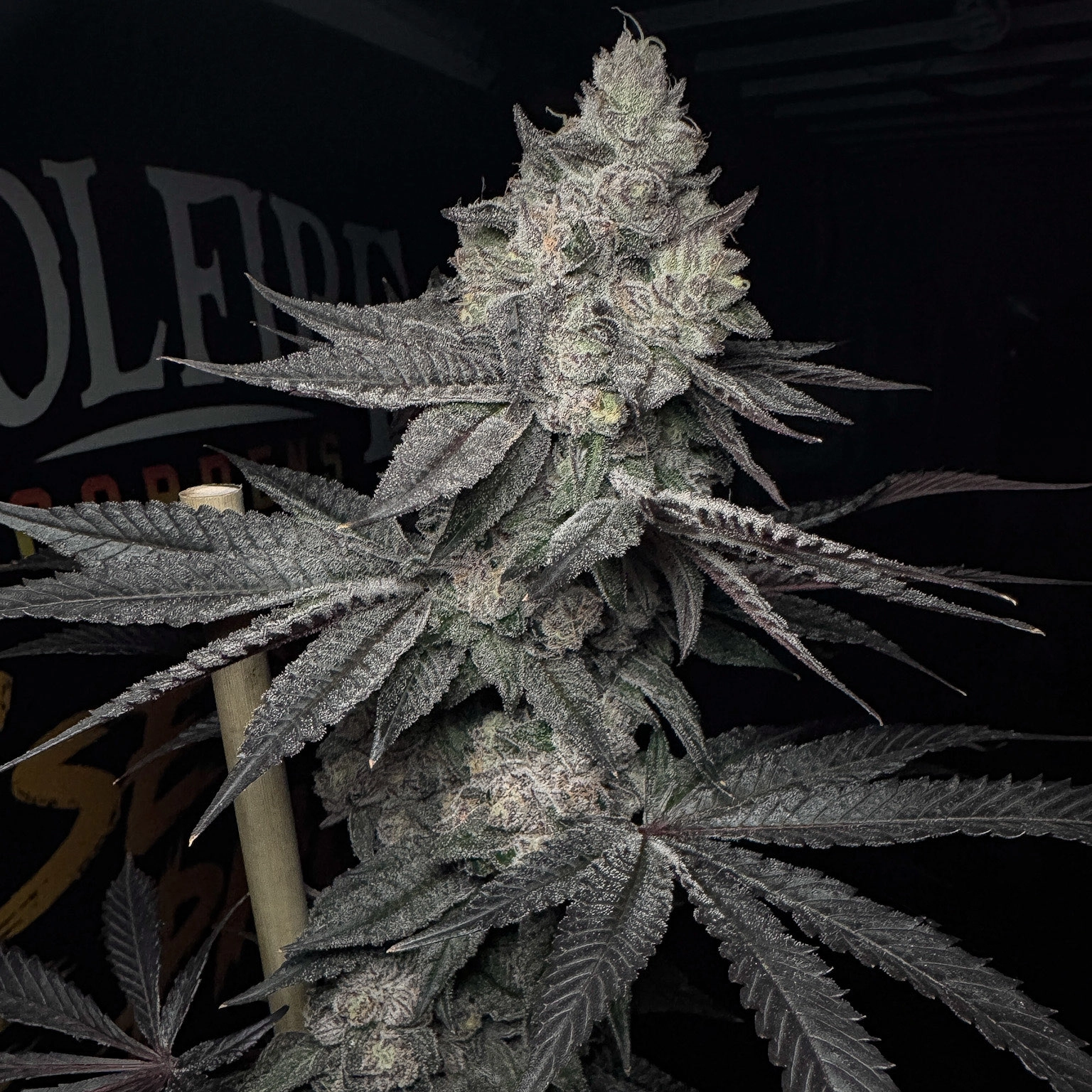 Rich, sour wine aroma with deep purple tones and heavy frost. Striking color and bold terps. A true showstopper in the garden.