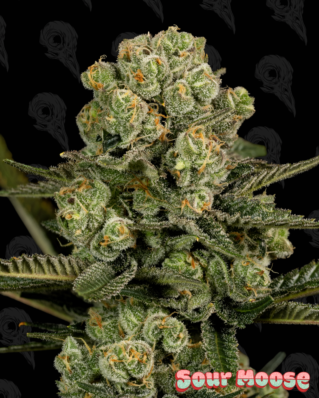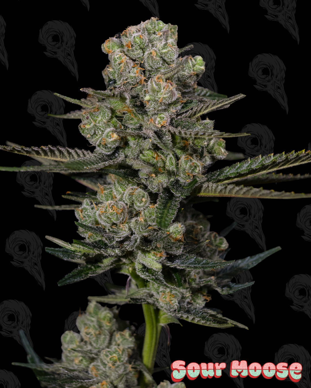 Notes from the Breeder(s): The Sour Moose has been an incredible strain to grow. Throughout testing it proved to be a very stable cultivar with no incidences of intersex traits. The Sour Moose had excellent stalk strength on almost all phenotypes tested and exhibited an average length flower maturity of approximately 50-55 days. In addition to stalk strength and overall plant strength, the Sour Moose also exhibited superlative trichome production as well as high floral generation. The flowers on the Sour Moose form very dense buds that stack on one another maximizing yield per square inch of stalk while still retaining adequate air flow pathways between flowers which will be helpful in deterring mold infections. The high trichome accumulation of the Sour Moose allows for a rich and dynamic terpene profile with citrus/lime scents dominating. Pine and fuel undertones also help to increase the complexity and rich texture of the terpene profile of the Sour Moose making it one of my favorite strains to grow, harvest, and ultimately ingest.