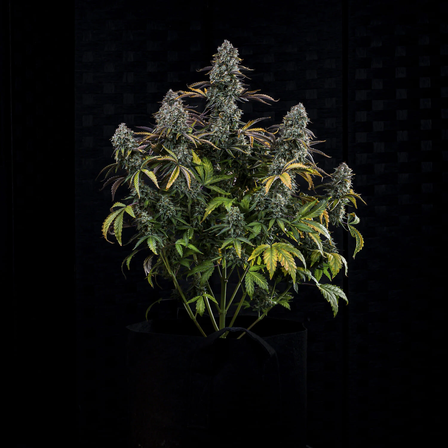 MEPHISTO GENETICS > NORTHERN CHEESE HAZE AUTO (EXODUS CHEESE X NORTHERN LIGHTS #5/HAZE F2 (CUTTING) X FANTASMO EXPRESS F4)) Genetic Heritage Exodus Cheese x Northern Lights #5/Haze F2 (cutting) x Fantasmo Express F4 Back in 2008, long before Mephisto was born, we were adding to our seed collection like crazy and came across some very interesting freebies on the site Seedbay. These were made by a community member 'hazeseeker' and (before the exodus cheese was blowing up and being hyped) the genetics involved were the exodus cheese cut as the mother and Northern Lights #5/haze from Sensi Seeds as the pollen donor. The resulting cross was aptly named 'Northern Cheese Haze'. We stored away the actual seeds we'd first wanted to try in favour of immediately running the N.C.H beans. More information can be found here We ran them 12/12 from seed and were impressed enough to make F2's to tuck away for a rainy day in the future. Fast forward to 2012 when we began experimenting and growing out too many strains to list en masse to see what diamonds we might uncover, and the NCH was ran again. She was an absolute beast, really verging on the line between what's comfortable to run inside - She would run 13-14 weeks in flower, which indeed is longer than most people like to venture into. But the trade-off (as with a lot of sativas) is that the yield was astronomical. Multiple, big, long donkey dicks, with little to no training, but the indica side to her parentage ensured tight compact flowers, just on exceptionally long colas. We selected our favourite lady from these F2 plants to keep a cut to work with. She was also trialled outside, and being a sativa hybrid (similar to amnesia in this respect) they kick into flower noticeably later, by several weeks in comparison to the indica and OG varieties being run at the same time. This actually meant whilst everything around it was battling the late summer/early autumn storms, the NCH was unphased, and again produced massive, tall plants packed with yield. We wanted to start exploring and adding more sativa based autos to the Mephisto catalogue and decided to pair our most sativa auto; Fantasmo Express to our favourite sativa leaning photoperiod: Northern Cheese Haze. And thus began the process to turn the NCH auto. Over the resulting generations of breeding, we witnessed all sorts of phenotypes emerging, larger structures familiar to the Fantasmo and hazy elements but with looser flower structures. We shied away from utilizing those, in favour of more cheese-like compact but musky frosty buds. As with all Mephisto strains we prefer to breed for overall quality and then unique traits over outright size and yield: After all, who wants a plant rammed of flowers if the flowers aren't up to par? The outcome may not be the haziest affair, but overall we're very satisfied with the resulting creation and delighted to introduce her as one of our new Artisanal collection strains for 2017. She's also already been put to use for breeding work in a future project involving a Super Sativa Seed Club relic from Holland: 'Old School Haze'.    Strain behaviour and structure: Overall we'd classify the NCH as a medium-sized strain, with the potential to monster at a fast rate. Seedling growth is pretty rampant and expresses fair-sized internodal gaps. She doesn't put out much foliage, meaning light penetrates through her well, which can result in a nice multi-branched plant without too much effort at all. There are a few phenotypes within the line; some bring about fatter shorter nugs, and others with more stretch but the end result is a very similar yield and they both have in common a very compact structure resulting in firm buds and a sublime end product. She doesn't afford too many trichomes on the fans but the flowers get quickly enveloped in a generous coating and the odour during growth is relatively low unless you set about touching and exploring a little too adventurously. The flowers build solidly but can also make some small compact foxtails, which is something to note. When harvested though, even immediately if you get your nose in there you are welcomed by a beautifully spicy, musky, cheesy aroma. Our Northern Cheese Haze automatic, was tested by Canna at an expo earlier in 2017 and a random bag bud came in at 21.07% Cannabinoid content, and this was from a breeding reject with no special treatment or harvest preparations, or even a ripeness check. So we think with a nice hand this variety could produce some very stellar results. The smoke is as you would expect, powerful. A blend of day-dreamy to couchlocking goodness and packed with unique flavours. If you want a solid strain to grow that ticks many a boxes, this has to be one to put on your grow-bucket list.  Feminized Autoflowering