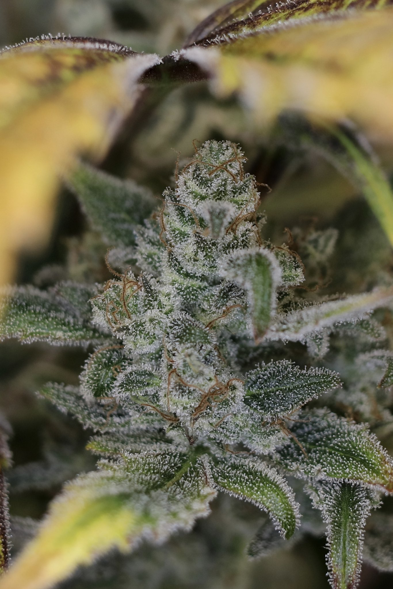 Vegas Snow is a compact but vigorous plant, blending the best traits of both parents. Her clusters stack beautifully along the top 1/3rd of her lateral branches, forming frosted nuggets that look like they’ve been dipped in powdered sugar. While I haven’t experimented with her outdoors, Vegas Snow’s more open bud structure should do well in less forgiving climates. Cooler temperatures will promote hues of blues and purples, elevating her already jaw-dropping bag appeal. As a side note- I had the chance to take flower samples to some hash makers and they were excited about her potential for washing due to the bud and trichome structure in combination with her copious amounts of resin and juicy terps.